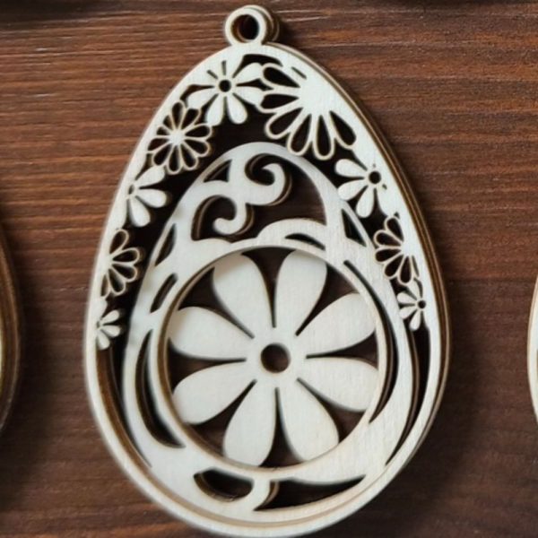 Ez a virágos 3 rétegű tojás függődísz 3 mm-es rétegelt lemezből készült, minőségi lézergravírozással és füstmentes, precíz lézervágással. Három rétegben épül fel, melyek finoman kidolgozott, áttört mintákat rejtenek: a középső rétegen egy nagyméretű, stilizált virágmotívum található, amelyet apróbb virágok és indák ölelnek körül. A tetején lévő akasztólyuknak köszönhetően könnyedén felakasztható. Ideális húsvéti dekoráció, tavaszi hangulatot teremtő kiegészítő, vagy egyedi ajándék.