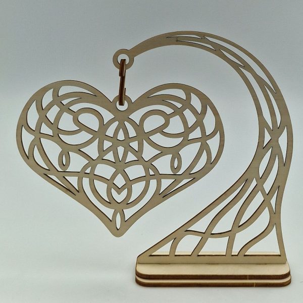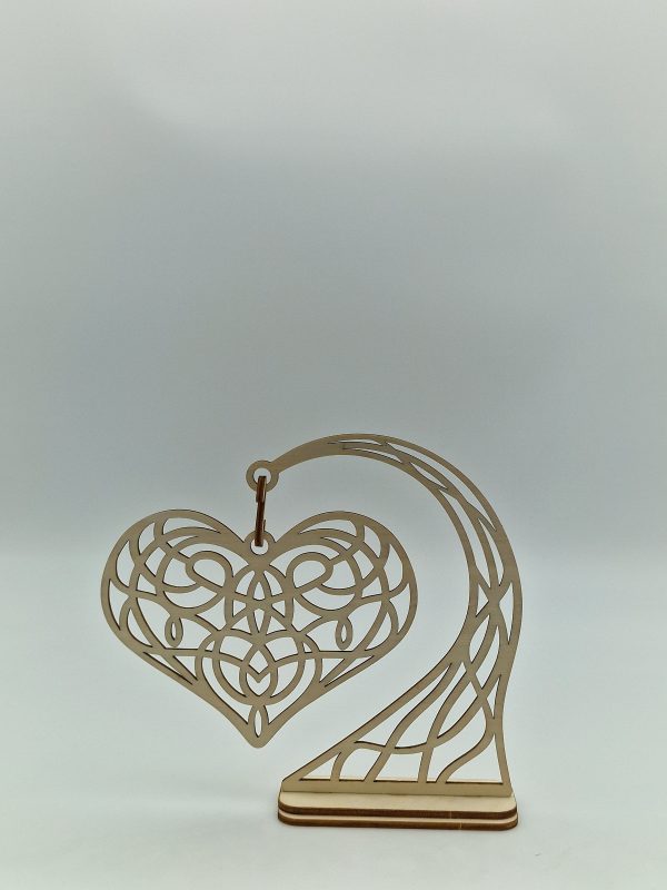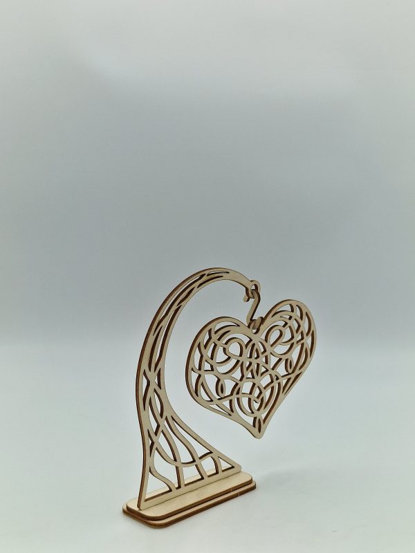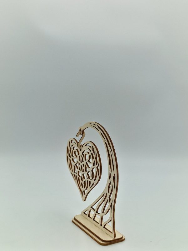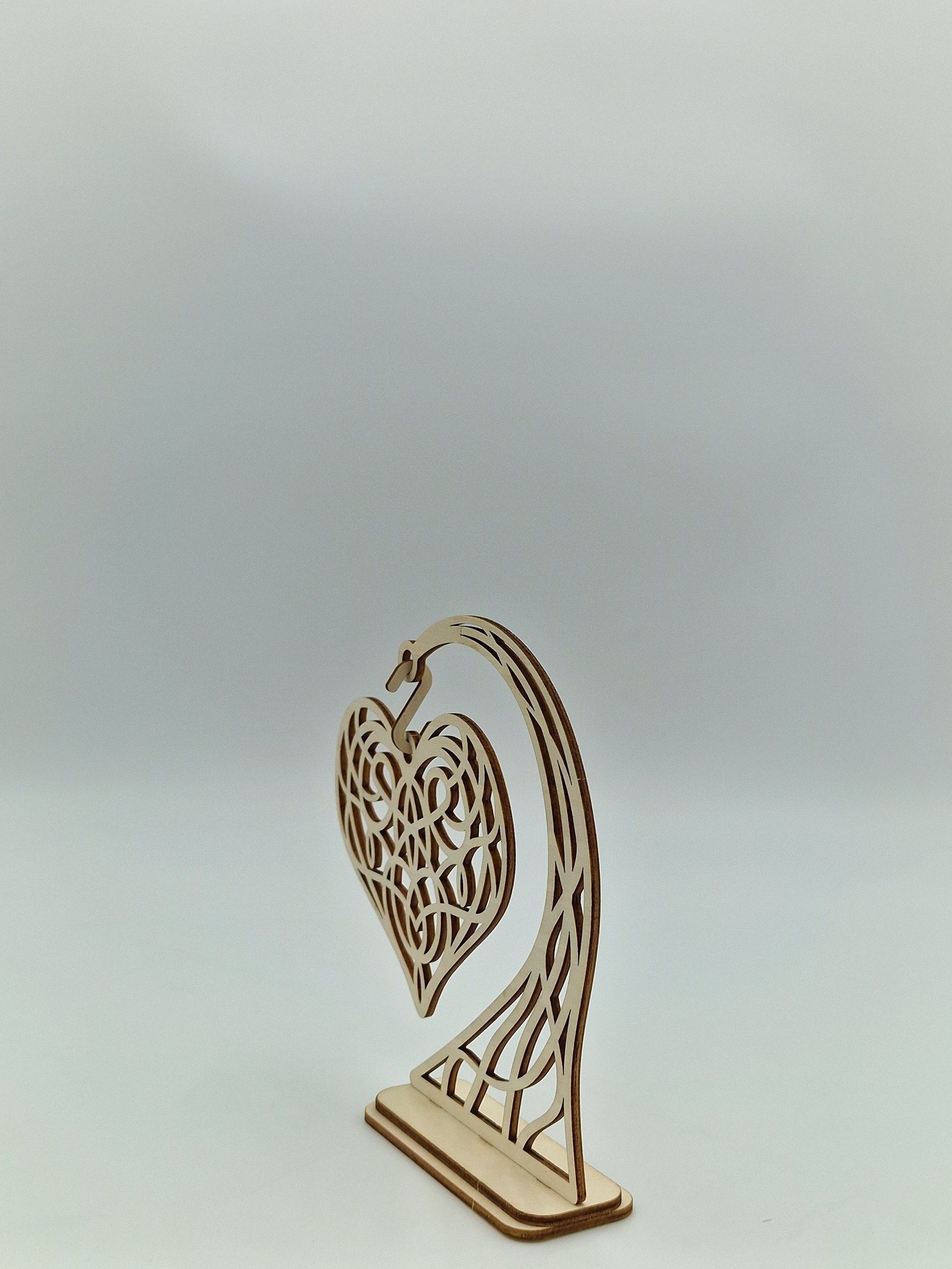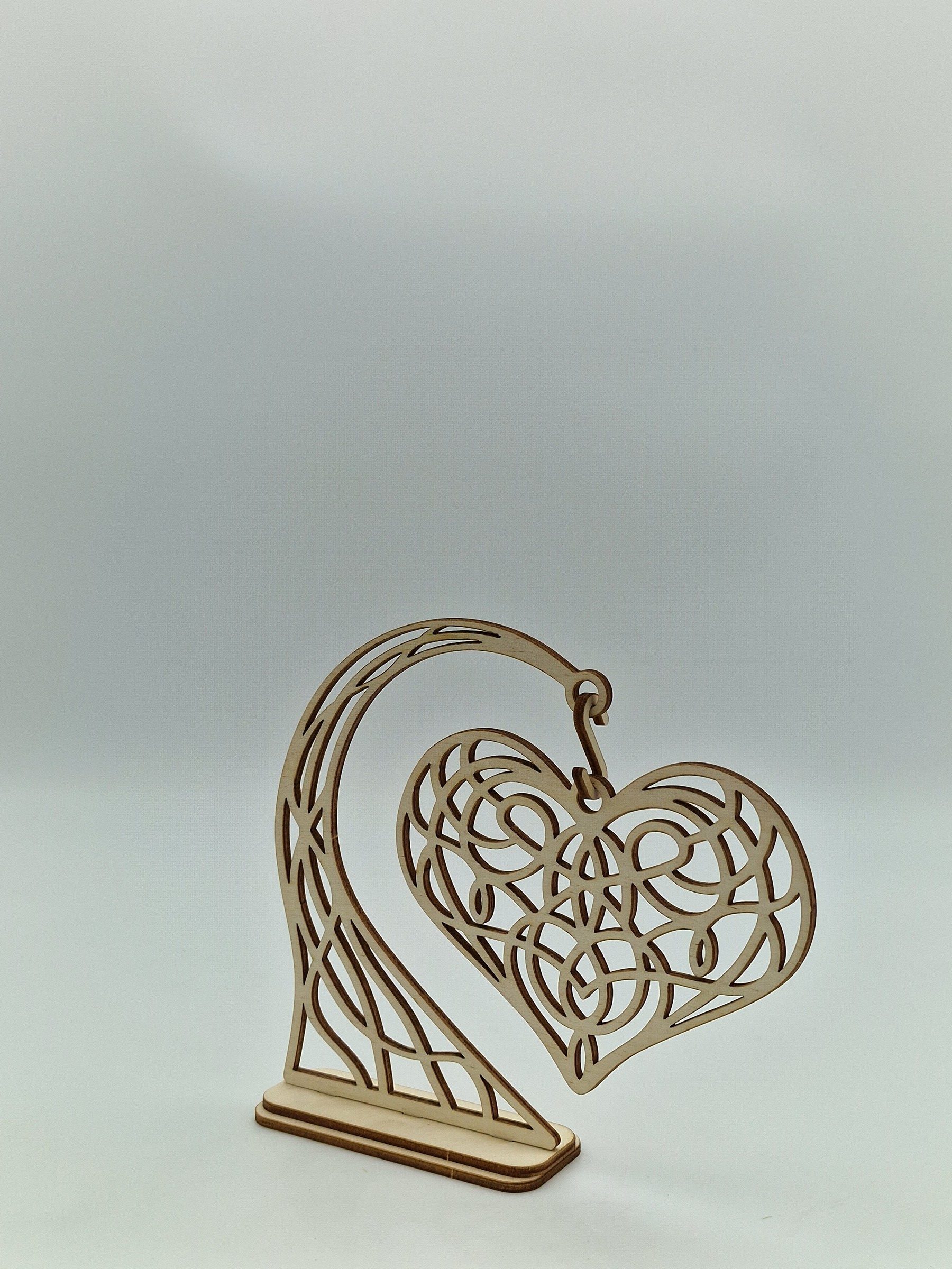 Tegye különlegessé otthonát vagy ajándékozzon tiszta szeretetet ezzel a filigrán, asztali függő szív dekorációval! A 3 mm-es rétegelt lemezből, precíz lézervágással készült dísz kecsesen ívelt állványon lóg, csipkeszerű mintázata pedig minden helyiségnek eleganciát kölcsönöz. Ideális ajándék Valentin-napra, évfordulóra vagy Anyák napjára.