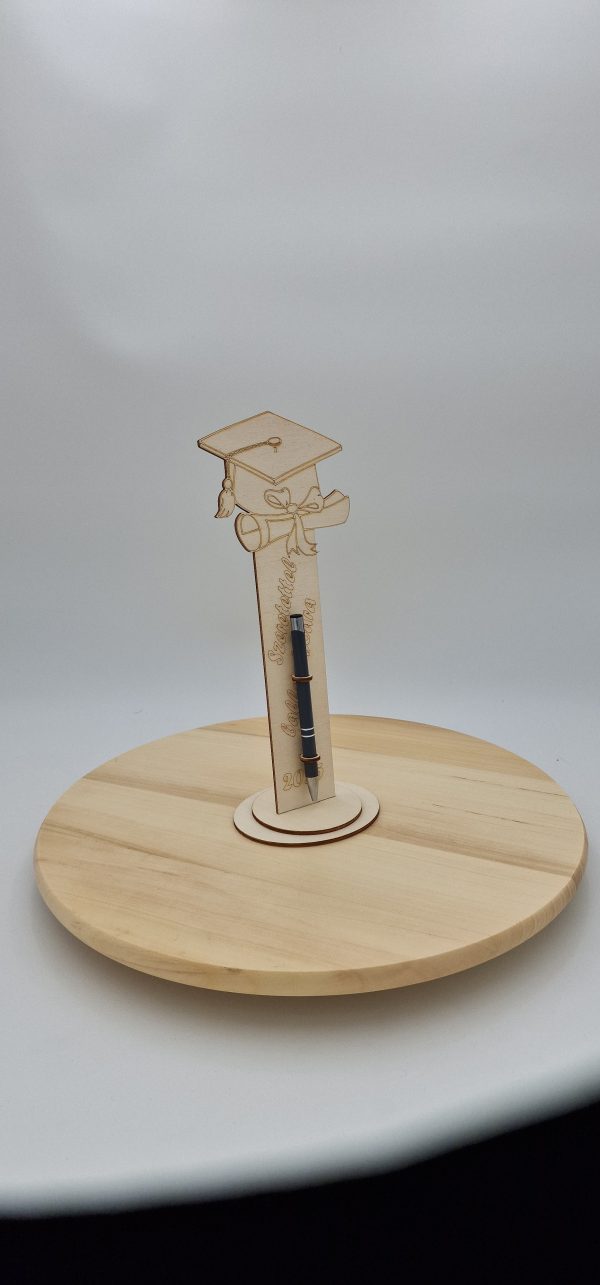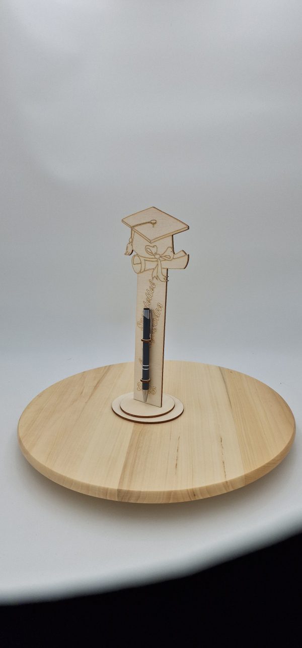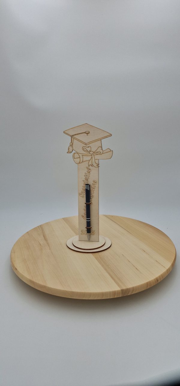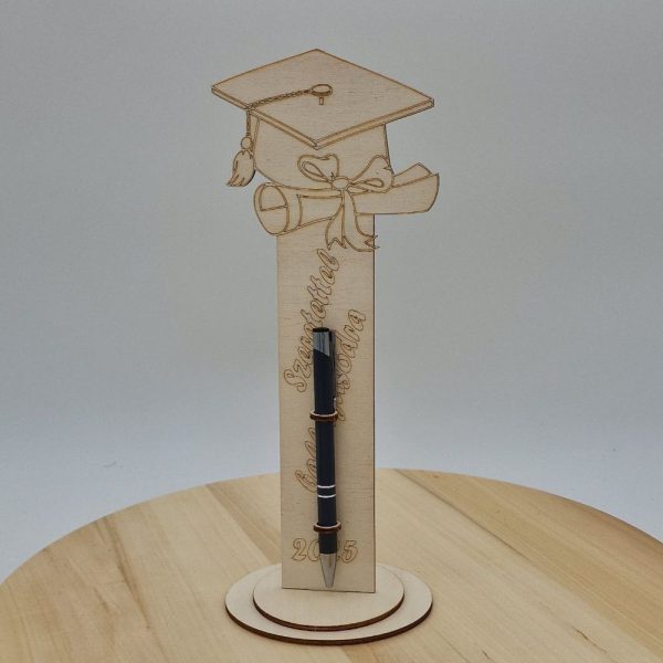 - Design és funkció: A tolltartó egy elegáns, függőleges tartóból áll, melynek tetején egy ballagási sapka és egy oklevél látható. A középső részen található egy kivágás, amelybe egy toll helyezhető (a termék toll nélkül rendelhető). Az alsó, szélesebb talpazat stabilitást biztosít.