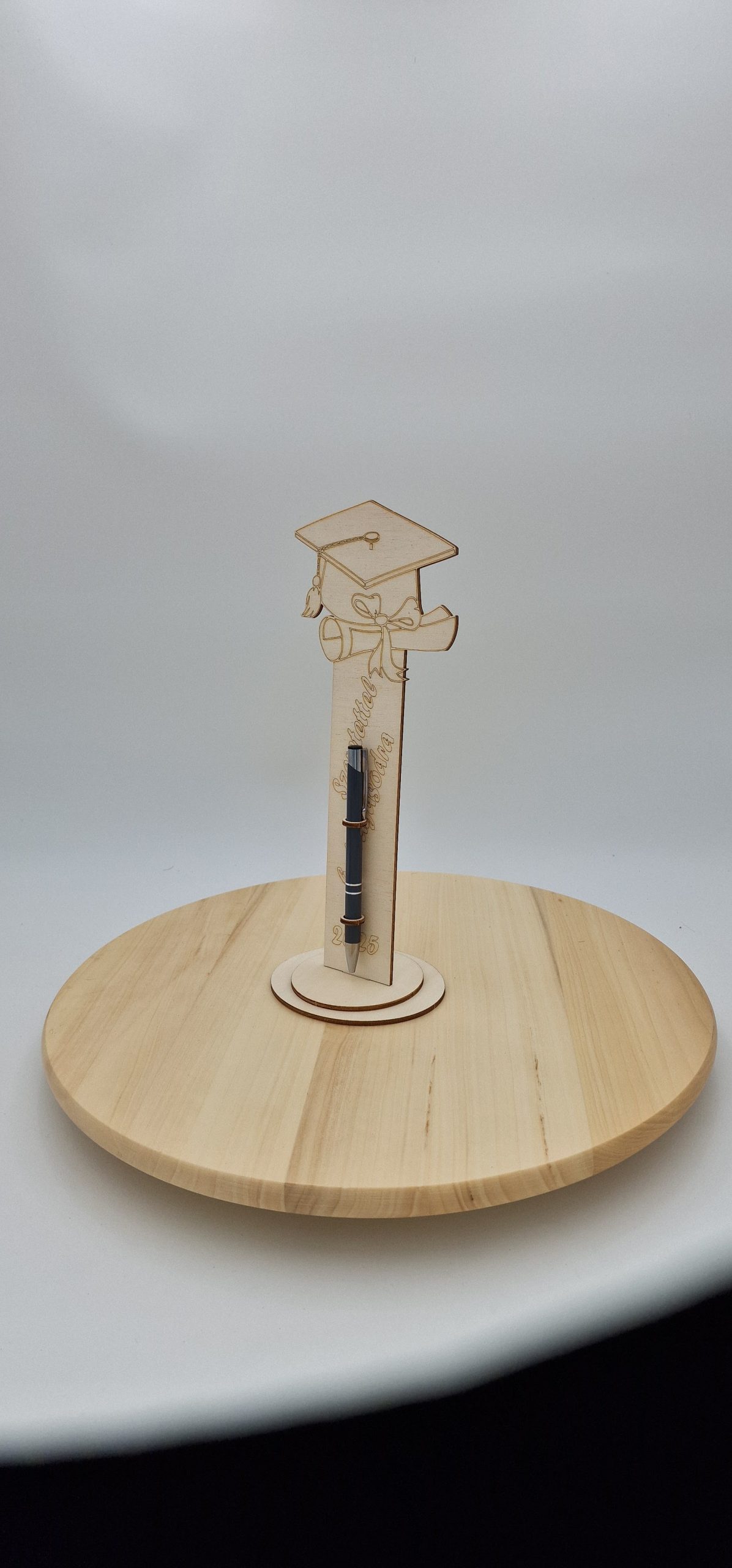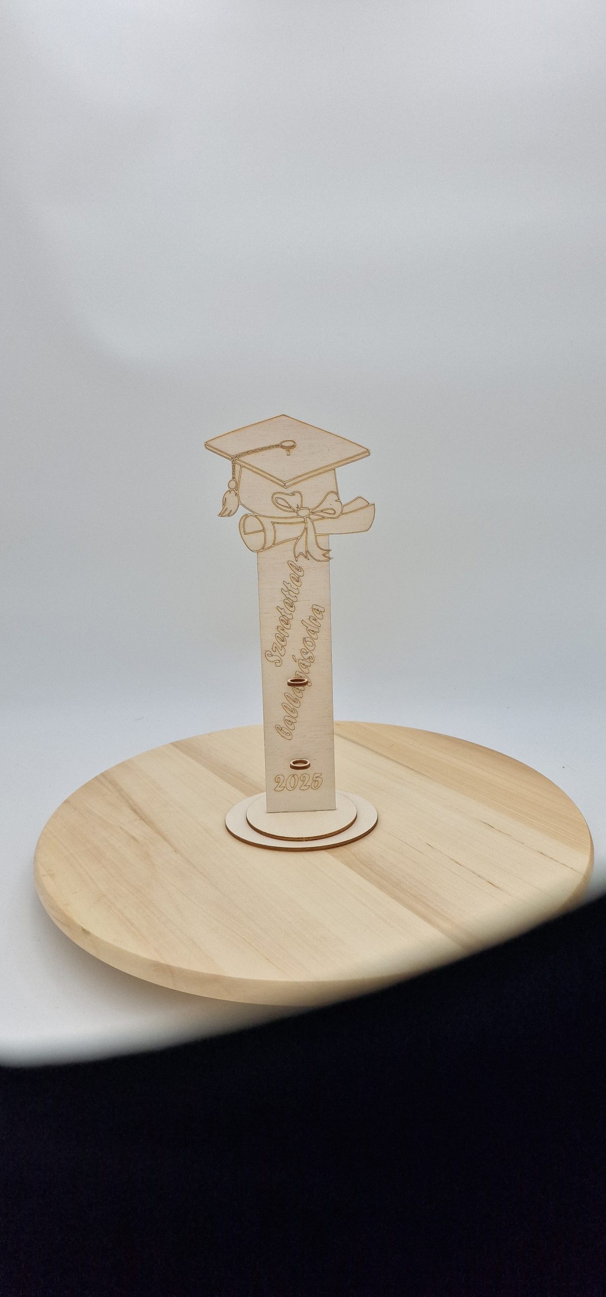 - Design és funkció: A tolltartó egy elegáns, függőleges tartóból áll, melynek tetején egy ballagási sapka és egy oklevél látható. A középső részen található egy kivágás, amelybe egy toll helyezhető (a termék toll nélkül rendelhető). Az alsó, szélesebb talpazat stabilitást biztosít.
