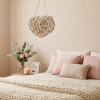 A termékhez tartozó finom, rózsaszín zsineggel könnyedén felakasztható a falra, ajtóra vagy az ágy fölé.
