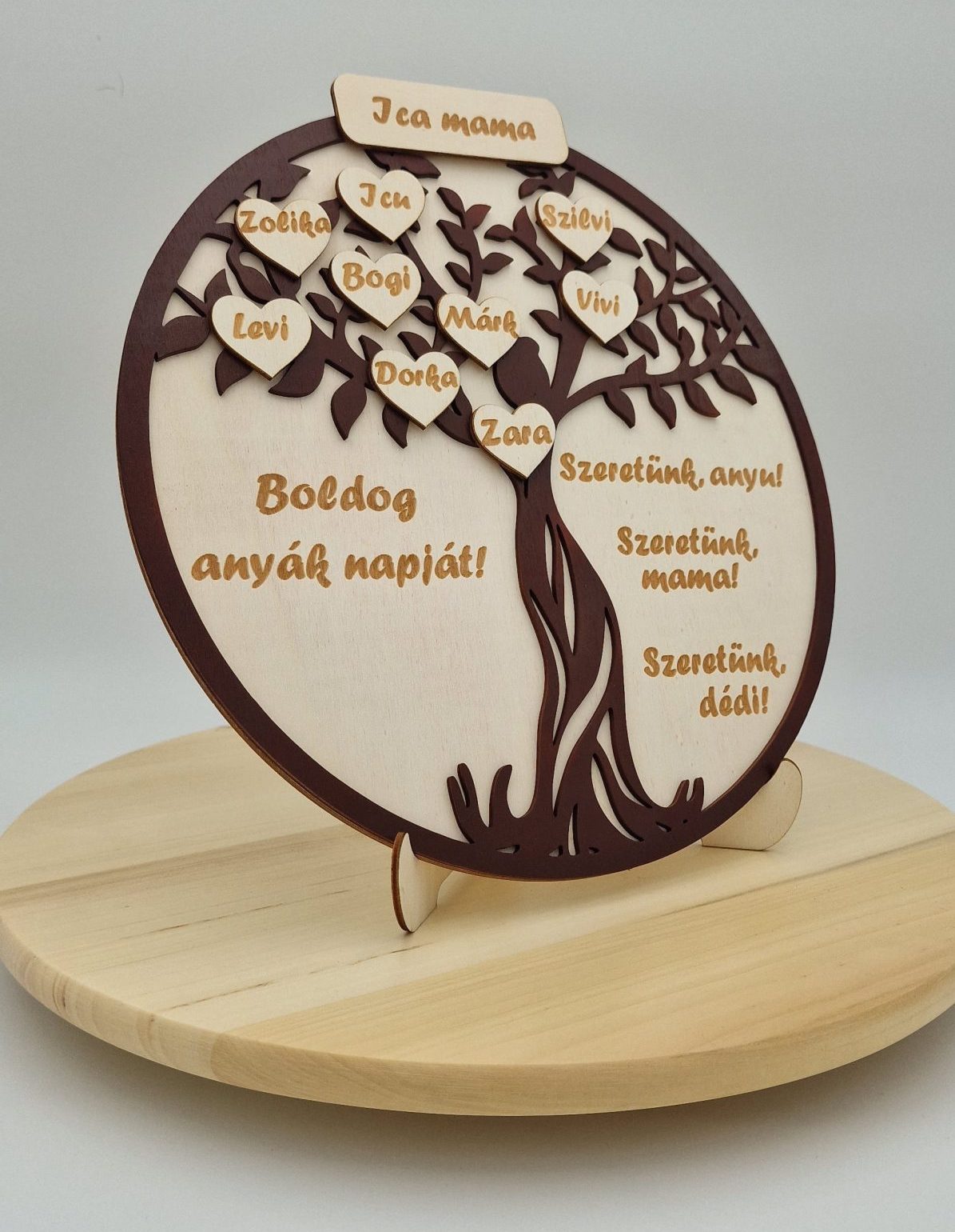- Teljesen Személyre Szabható: A nevek, a feliratok (pl. „Boldog anyák napját!”, „Szeretünk, anyu!”, „Szeretünk, mama!”, „Szeretünk, dédi!”) mind egyedire szabhatók, így pontosan a Te elképzeléseid szerint készül el. Akár születésnapra, névnapra, anyák napjára, karácsonyra vagy bármilyen különleges alkalomra tökéletes választás!