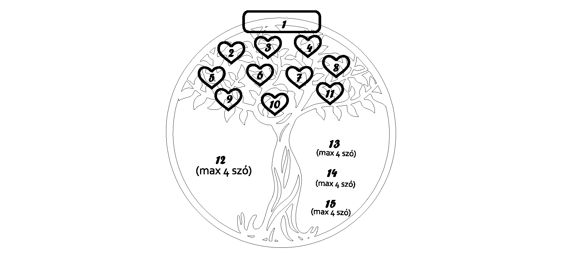 - Egyedi Design: A fa formájú alaplapra rögzített szívecskéken a családtagok nevei kapnak helyet, így egy igazán személyes és megható ajándékot alkothatsz.