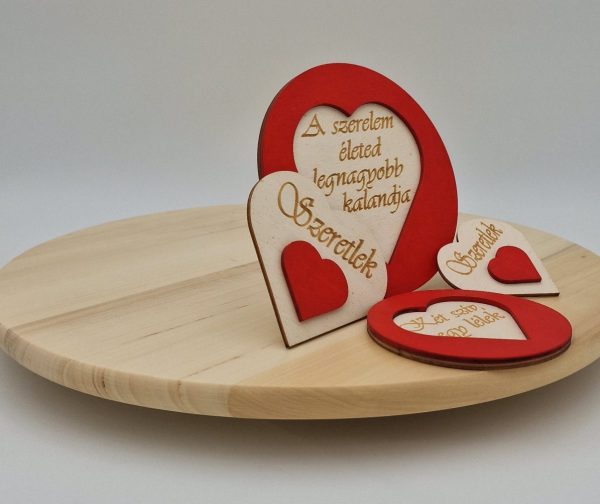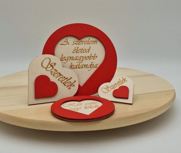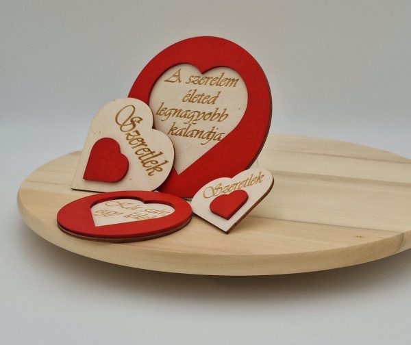 A szívek kiváló minőségű, 3 mm vastag rétegelt lemezből készülnek, amely természetes és meleg hatást kölcsönöz nekik. A gyártási folyamat során minőségi lézergravírozást és precíz, füstmentes lézervágást alkalmazunk, így biztosítva a tökéletes éleket és a részletgazdag, tartós mintázatot. A képen látható „A szerelem életed legnagyobb kalandja” és „Szeretlek” feliratok inspirációként szolgálhatnak, de lehetőség van teljesen egyedi szöveg, név, dátum vagy akár egy rövid idézet gravírozására is.