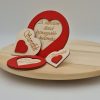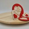Kézzel készített, lézergravírozott és vágott fa szív dekoráció pár. Kiváló minőségű, 3 mm vastag rétegelt lemezből, precíz, füstmentes technológiával. A színek és a gravírozott felirat teljes mértékben személyre szabhatók, hogy tökéletesen illeszkedjenek elképzeléseidhez. Ideális választás egyedi ajándéknak vagy különleges lakásdekorációnak.