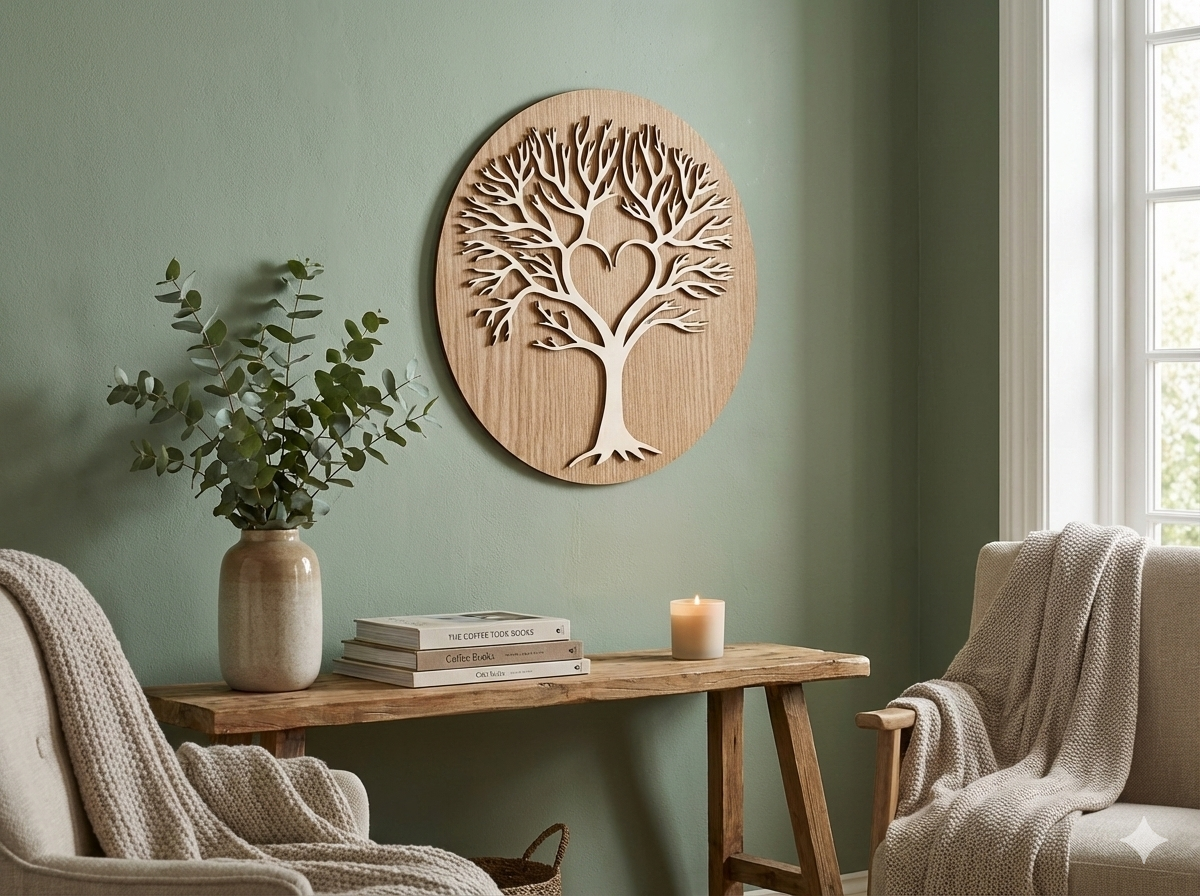 „Szív Életfa” Fa Fali Dekoráció – A Család és Szeretet Jelképe