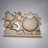 Stabil asztali kivitel: A széles, kétszintes fa talpazatnak köszönhetően a keret stabilan díszítheti a komódot vagy a polcot, a natúr fa tónusa pedig minden stílusú babaszobába tökéletesen illeszkedik.